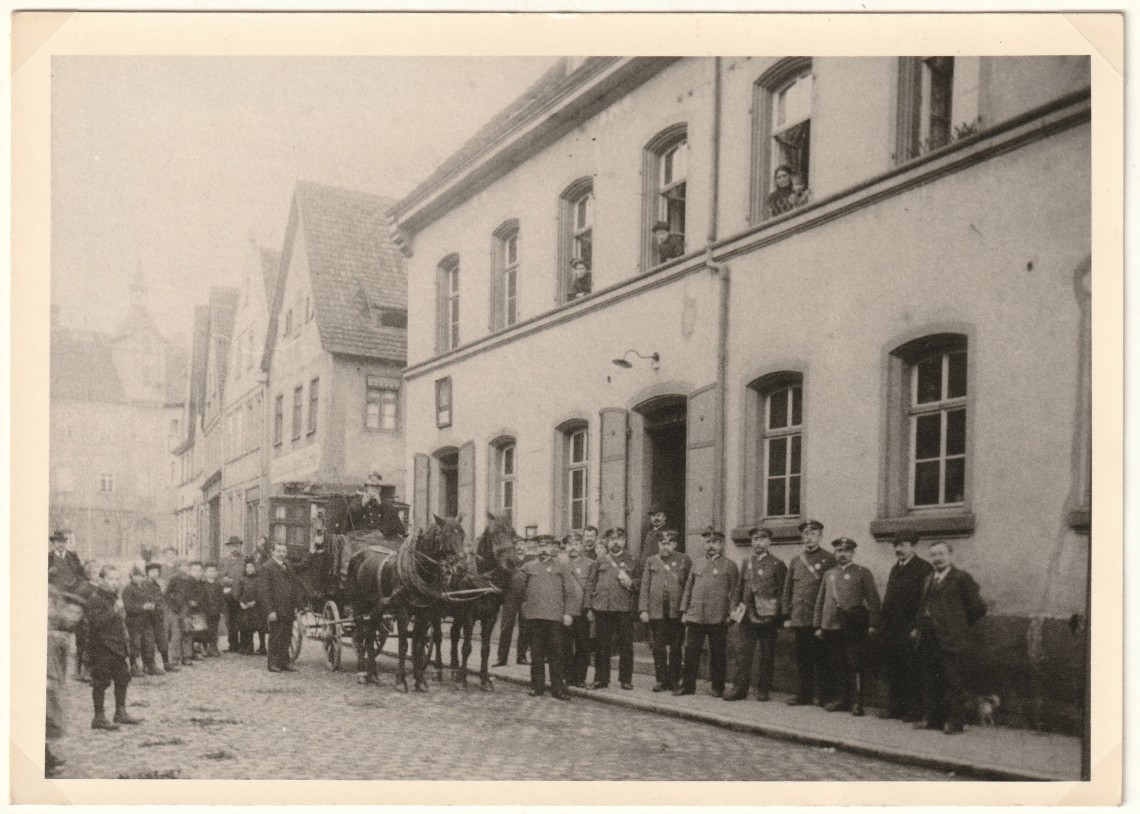 Auf dem Bild sieht man die letzte Postkutsche, die am 31. Januar 1910 von Neustadt a.d. Aisch nach Dietenhofen gefahren ist. Die Männer mit den Umhängetaschen und den Mützen rechts daneben sind Postboten. Früher wurde sogar mehrmals am Tag die Post ausgetragen, denn Telefon gab es nicht oder nur sehr wenig. Handys oder Computer gab es natürlich auch nicht, deswegen schrieb man sich viel mehr Briefe oder Postkarten als heute.